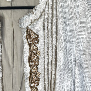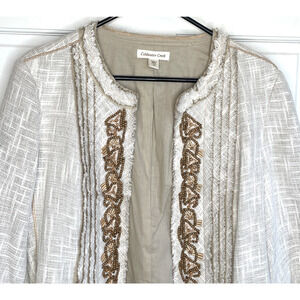 Coldwater Creek Women's Beaded Open Jacket Size 14 Cotton Linen Blazer Coastal