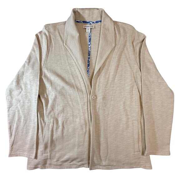 Coldwater Creek Womens Beige Single Button Long Sleeve Cotton Sweater Blazer L