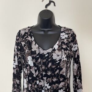 Coldwater Creek Womens Black Grey Sheer Mesh Floral Midi Dress Whimsy Grunge - 6.