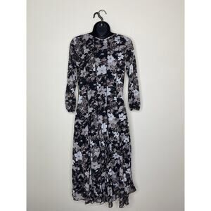 Coldwater Creek Womens Black Grey Sheer Mesh Floral Midi Dress Whimsy Grunge - 6