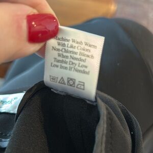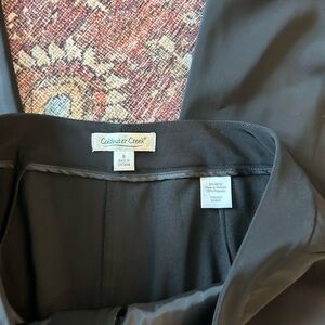 These trousers have a wide leg. They are very dressy . Great for work or play.