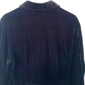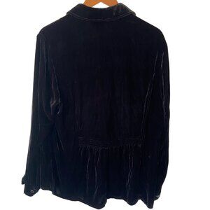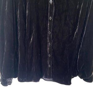 Coldwater Creek Women's Black Velvet Long Sleeve Button Up Blouse Top Size 1X. Chest: 50" Length: 28" Front Princess Seams. Silver and Black Buttons. Excellent condition with no flaws. Thank you for looking