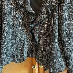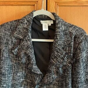 Elevate your wardrobe with this stylish Coldwater Creek jacket. Featuring a classic black and white design, this piece is perfect for any occasion. Enjoy the sophisticated look and comfortable fit.