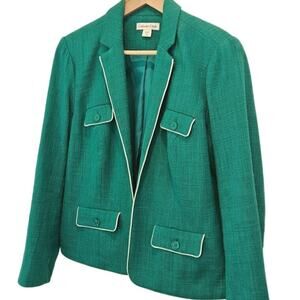 Coldwater Creek Women's Blazer Tweed Jacket Kelly Green Size 10