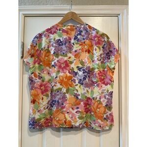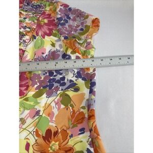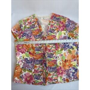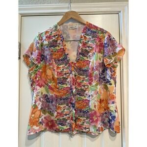 Coldwater Creek Women's Blouse L/XL Multicolor Floral Ruffle Smocked Button Up