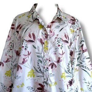 Coldwater Creek Womens Blouse Plus Sz 18 Purple Floral Cotton Button Up Shirt