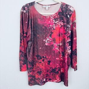 Coldwater Creek Womens Blouse Top Size 2X Burnout Floral Pullover Pink