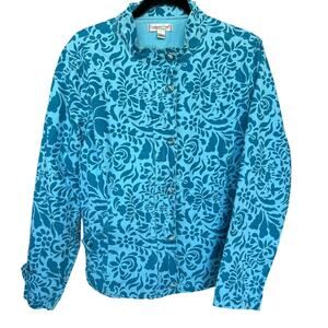 Coldwater Creek Women's Blue Floral Print Full Zip Snap Jacket Size Large