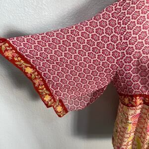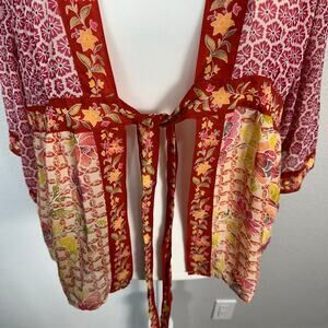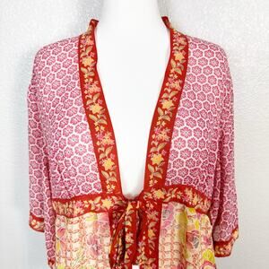 Coldwater Creek Womens Boho Silk Chiffon Print Kimono Front Tie Top Colorful 1X