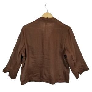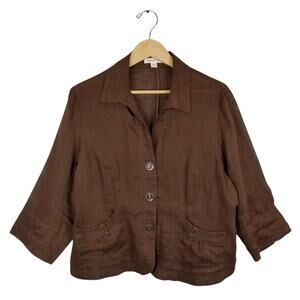 Coldwater Creek Women's Brown 100% Linen 3/4 Sleeve Button Up Shirt Size 16