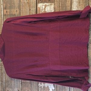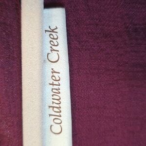 Coldwater Creek Women's Burgandy Pleated Button-Up Top, Size 10/12 (M). Elegant and stylish, this burgundy button-up top is perfect for any occasion. The pleated design adds a touch of sophistication. No callouts.