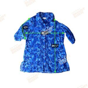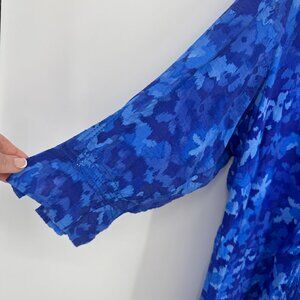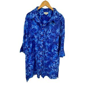 Coldwater Creek Womens Button Up Blue Floral Blouse 2X Pintuck Pleats 3/4 Sleeve