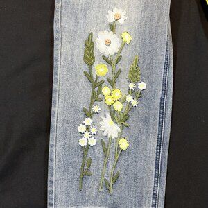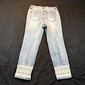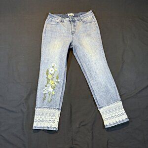 Coldwater Creek Women's Capri Jeans 10 Blue Lace Cuff Embroidered
