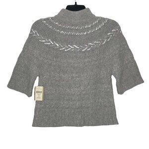 Coldwater Creek Womens Cardigan Size XS Sequin Cable Knit Button Closure Gray