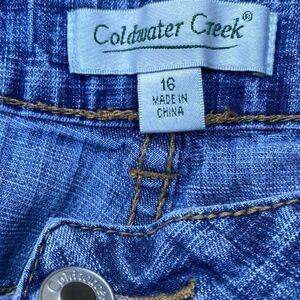 Coldwater Creek blue straight leg jeans size 16, 36” waist, 11” rise, 30” inseam. 90% cotton, 9% polyester, 1% spandex for comfort and stretch.