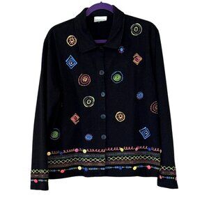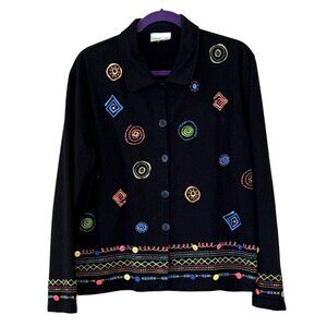 Coldwater Creek Women's Colorful Buttons Embroidered Short Jacket Black Size L
