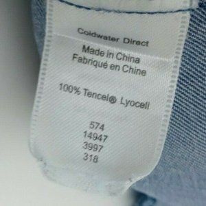 This is for a used Coldwater Creek Women's Denim Frayed Hem Shirt With Arrows Design Size PL.