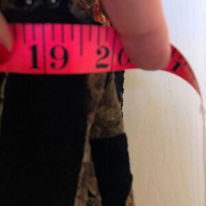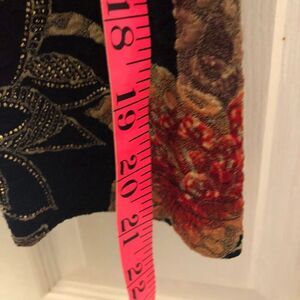 Coldwater Creek Women's Floral Button Down Collared Shirt Petite Small V-Neck. Shirt is pre-owned. Please see all photos for visible condition. Was my MILs and is barely worn if at all which is normal for all of her clothes. USA. RN 98516. I'm not sure of the age - but based on the size it isn't vintage that I'm aware of. 52% acetate 43% polyester 5% spandex. Is multicolor - black brown some gold red tan. There are square black buttons. No pockets. Approximately 21.5 inches long x 20 inches pit to pit and 21 inches arm length.