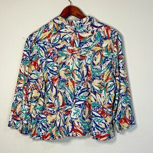 Coldwater Creek Womens Jacket XL Colorful Floral Full Zip Top Linen Blend
