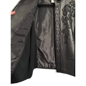 Coldwater Creek Women's L Vtg 90s Y2K Leather Wool Blend Embroidered Zip Jacket