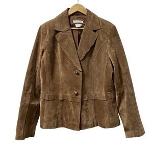 Coldwater Creek Womens Leather Suede Blazer Jacket Size L Brown Western Ranch