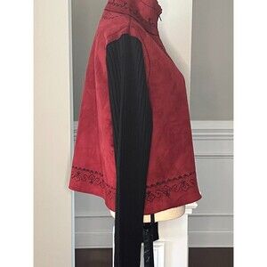 Coldwater Creek Women's M Burgundy& Black Faux Suede Fleece Lined Sweater Jacket