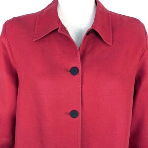 Coldwater Creek Womens MED Red Linen Embroidered Jacket Shacket