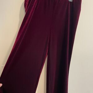 Coldwater Creek Womens Maroon Dress Pants Size M Velvet Wide Leg Pull On Stretch