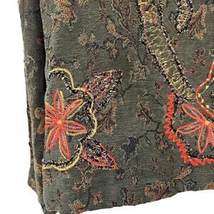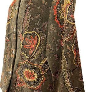 Coldwater Creek Womens Olive Orange Embroidered Mixed Media Jacket Blazer sz M