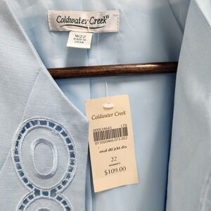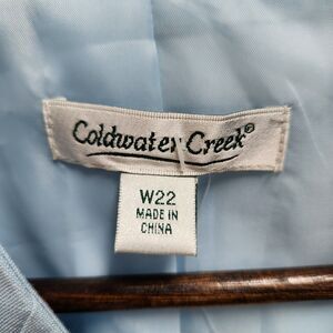 Coldwater Creek Womens Plus Linen Blend Blazer Size 22W Blue Embroidered Career