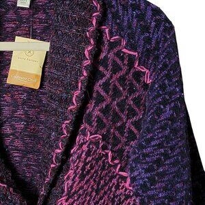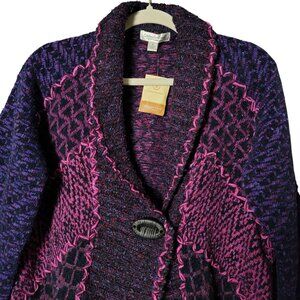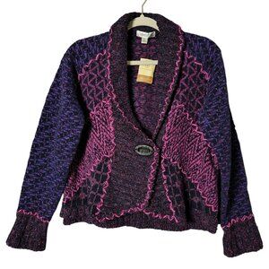 Coldwater Creek Womens Purple Artsy Boho Patchwork Knit Cardigan Sweater Medium