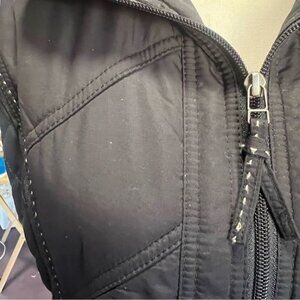 This Coldwater Creek quilted sleeveless vest is tailored in a fitted style and designed in a lightweight, black polyester material. Features include a full-zip front, zippered pockets, and stitching details, offering a stylish and functional addition to layering pieces. Size XS, this vest is versatile for casual or semi-casual outfits.