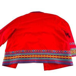 Coldwater Creek Womens Red Embroidered Jacket Size L 100% Cotton & Polyester