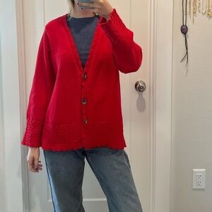 Coldwater Creek Women’s Red V-Neck Button Cardigan Lace Trim Size Medium