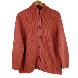 Coldwater Creek Women's SZ L 100% Cotton Shaker Detail Button Cardigan In Spice