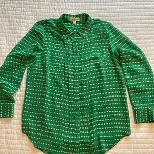 Coldwater Creek Women's Semi-Sheer Green Polka Dot Blouse, size Large