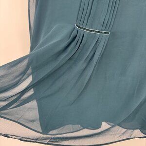 This elegant teal blouse from Coldwater Creek features a flowing, sheer design that provides a sophisticated and comfortable fit for women. Crafted from polyester, it offers durability and easy care, while the button-up front and unique pleated detailing add a touch of timeless style.