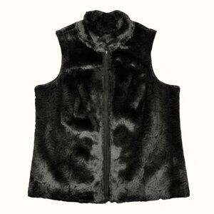Coldwater Creek Women's Size 2X Black Swirl Fully Reversible Faux Suede Vest