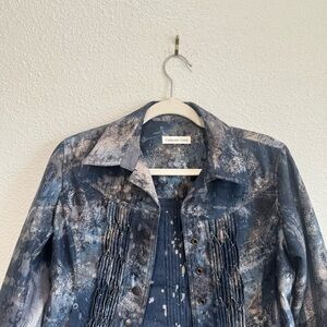 Coldwater Creek Womens Size 8P Dark Floral Whimsigoth Beaded Blazer Jacket Y2K Artsy Grunge Boho