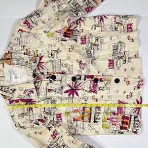 Elevate your wardrobe with this stunning Coldwater Creek blazer in a beautiful sketch art print. The button-up blazer features a short length and long sleeves, making it perfect for occasions such as travel, casual outings, and workwear. The blazer is made from 100% linen fabric and has a knit texture, providing you with both comfort and style. With a regular fit and size type, this blazer is available in size L for women. The garment care instructions recommend dry cleaning only. The blazer comes with shoulder pads, a collared neckline, and a lining made of acetate, providing additional comfort and style. Perfect for the winter and fall seasons, this blazer is a must-have for any fashion-forward woman.