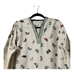 Coldwater Creek Womens Size Large Butterfly Print Cotton Tunic Top Blouse