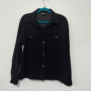 Coldwater Creek Womens Size M Black Velvet Velour Button Up Jacket EUC