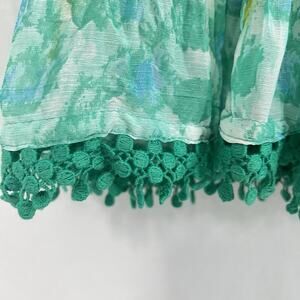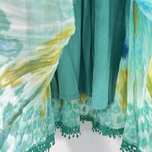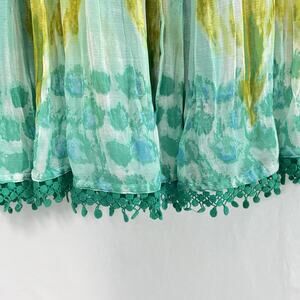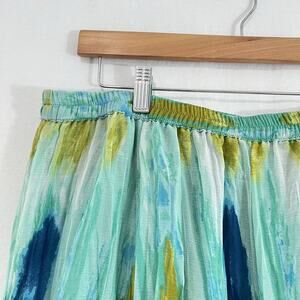 Coldwater Creek Womens Size PL Green Maxi Swing Skirt Watercolor Forest Fairy