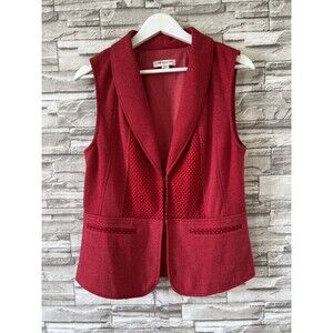 Coldwater Creek Womens Size Small Red Herringbone Vest Shirt Top Clasp Closure