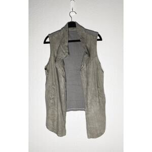 Coldwater Creek Women's Suede Leather Front Open Waterfall Vest Cotton Back Pockets Light Gray