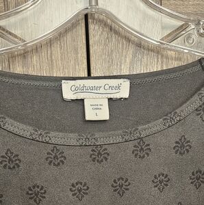 Coldwater Creek Women's Suede-Touch Stretch Tee Dark Green & Black Pattern Sz L