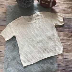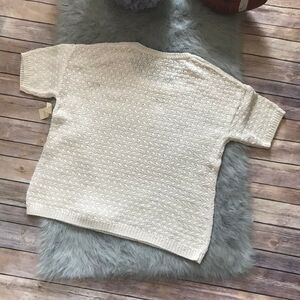 Coldwater Creek Womens Sweater Size XL 16 Cream Lattice Stitch Short Sleeve NEW