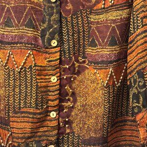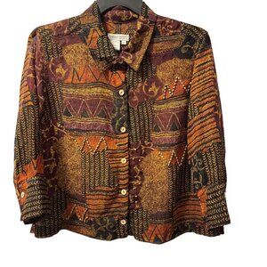 Coldwater Creek Womens Sz PXL Button-Up Shirt brown multi blouse shirt