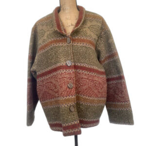 Coldwater Creek Womens Tapestry Jacket Wool Blend Earthy Fall Tones Size XL