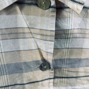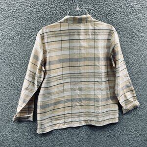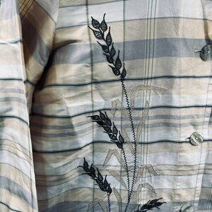Coldwater Creek Womens Top Medium Tan 100% Silk Embellished Button Front Shirt